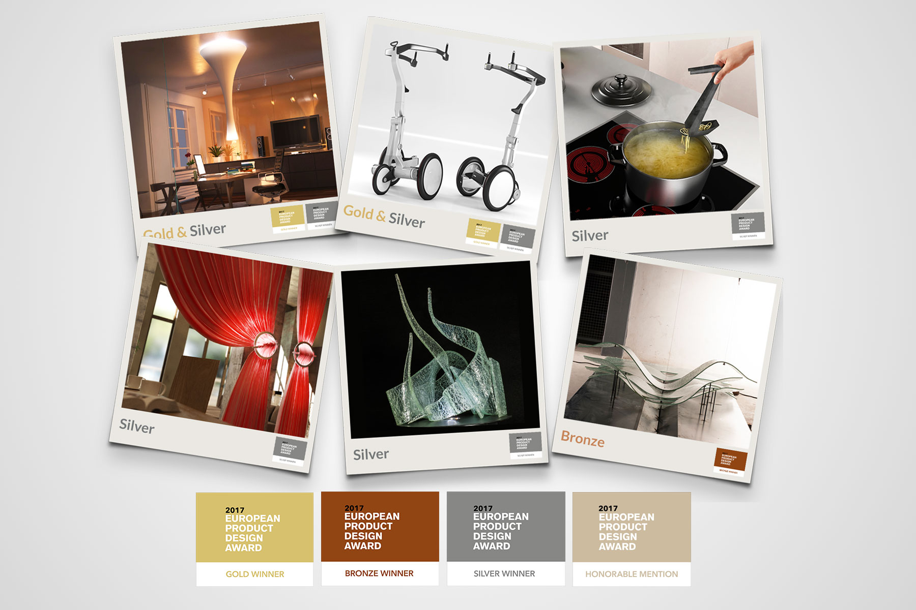 Full booty at the International Competition “European Product Design Award” in Brussels, where the jury awarded 2 gold, 5 silver, 1 bronze and four mentions. The awards ceremony with the presentation of the certificates, took place in Brussels, in one of the halls of the European Parliament.